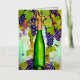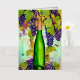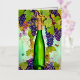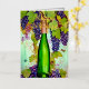 Bonita tarjeta de saludo de personalizable incluye botellas de vino, uvas y mariposas, arte acuático digital con Relieve metalizado de oro "Feliz cumpleaños"