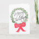 Esta sencilla tarjeta de vacaciones cuenta con una rústica cortina de pino pintada a mano con bayas rojas y un gran arco rojo. Al otro lado de la cortina está la leyenda "¡Feliz Navidad!" escrito en elegantes letras de guión. Dentro hay espacio para tu foto, una nota de personalizado o un saludo, y tu firma. Una forma elegante de enviar los saludos de la temporada.