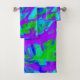 Acuarelas abstractas de pavo real El arte abstracto de las acuarelas moradas, azules y verdes comenzó como una foto de las coloridas plumas de un pavo real y se transformó en este impresionante juego de toallas de baño. Por celeste@khoncepts.com