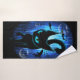 Gato negro surrealista que se mueve en el fondo de un profundo océano azul surrealista, rodeado de tiburones, peces, algas, burbujas, como un sueño oscuro mágico. Derechos de autor del arte digital BluedarkArt.