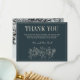 Una preciosa tarjeta de agradecimiento con "Gracias" y texto en la parte delantera, y una foto de la novia y el novio en la parte trasera. La parte de texto se puede escribir para enviarla a cada invitado o quitarla para escribir una nota a cada invitado. Coordina perfectamente con la colección de Colores Curados de Adelaida.