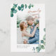 Elegante invitación a la boda de eucaliptos acuarela con una foto personalizada.