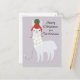 Llama linda, blanca que lleva el gorra del invierno y luces de navidad peruanos. Personalice la tarjeta añadiendo su nombre usando plantillas. Ilustracion y diseño originales por Mira