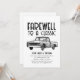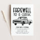 Si te gusta lo simple, esta invitación de estilo sencillo es correcta para ti. La invitación presenta un diseño elegante, con un fondo blanco y suave con un camión Chevy vintage. En el centro, los detalles del fiesta están bellamente escribidos en un tipo de letra vintage en bloque negro que exuda un aire de sofisticación. Bienvenido a los huéspedes y honra a su jubilado, con esta invitación a la fiesta de retiro. El color de fondo y el texto son editables.