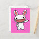 Adios es un conejo que sólo va hacia adelante. ¡Nunca mira hacia atrás! ¡Nunca! Adios siempre está lleno de optimismo. Es una gran influencia... bueno, excepto por el hecho de que le gusta robar pastel y dulces.