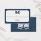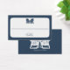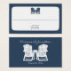 El diseño de la silueta de las sillas de Adirondack en las tarjetas de asiento azul marino para complementar nuestra invitación a bodas en la playa.