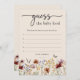 Adivina Floral La Tarjeta De Comida Para Bebés. ¿Buscas una atmósfera bohemia única para impresionar a tus amigos y familia? Moda y elegante, esta hermosa paleta de colores de color tostado, marrón, óxido, terracota y naranja quemado es el tema de moda para las duchas de este año. El pasto seco rústico, las hojas y las flores silvestres vintage son detalles impresionantes que se añaden a tu moderna ducha de bebé de moda boho. Todas las papelería están diseñadas profesionalmente por Painted Paperie.