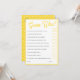 Un clásico borde rayado blanco y amarillo, un ilustracion de abejorros acuarelas y una tipografía de inspiración vintage son las características de esta elegante tarjeta de juego neutra de género "Adivina quién?". Simplemente edite la plantilla con sus detalles y elija cualquier opción. También están disponibles invitaciones, notas de agradecimiento y otros elementos de coordinación...