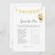 Un juego divertido para la ducha de bebé es el juego Adivinen el precio. Este juego tiene un cartel amarillo en la parte superior y un oso de peluche con una abeja miel. Al revés hay un oso de peluche chica apoyado en un barril de miel mirando una abeja con plantillas.
