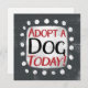 "Adopta un perro hoy" es un lindo diseño de texto en gris con texto en negro y rojo. Se sienta sobre una forma de acento blanco y sobre los adorables puntos de polka blanco que la rodean.