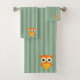 Adorable búho amarillo vintage graciosas líneas verdes lindo juego de toallas de baño.