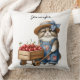 ¡Perfecto para los amantes del gato! ¡Esta almohada de gato suave hace un gran regalo o un agradable acento para cualquier hogar! Esta almohada de gato adorable hará que tu corazón se derrita. Este Gatito Cute lleva puesto un Gorra de paja con una barra de puntos de Polka azul, y overoles de Denim con parches. Ella está empujando un viejo carro de la granja de madera lleno de cerezas. Puede personalizar fácilmente esta deliciosa almohada Kitty añadiendo su propio nombre al frente y al fondo de la almohada de gatito.