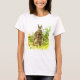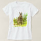 Esta dulce camiseta tiene un lindo conejo marrón en la hierba verde.