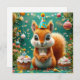Una ardilla encantadora vestida con un gorra fiesta festivo, rodeada de vibrantes decoraciones y coloridos quequitos en un ambiente alegre y alegre.