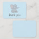 Ducha de bebé, tarjeta de agradecimiento con un adorable elefante bebé sonriente. El diseño es personalizable y se puede personalizar el texto.