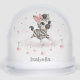 Cute baby shower or birthday snow globe gift or favor featuring adorable little female zebra wearing a cute pink bow sitting on clouds with some love hearts