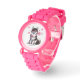 Este lindo reloj de niños presenta un impresionante ilustracion siberiano Husky con un vibrante fondo rosado. Perfecto para los amantes de los perros pequeños, este divertido y elegante reloj hace un gran regalo para cumpleaños, vacaciones o cualquier ocasión especial.