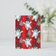 Esta linda tarjeta postal de Navidad roja tiene un adorable patrón de muñecos de nieve bailando contra un brillante fondo degradado rojo. También tienen árboles de Navidad plateados alrededor, con pequeñas ráfagas de nieve cayendo entre ellos.