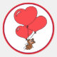 Adorable osito de peluche sostenido en alto por tres brillantes globos de corazón rojo. Estos pegatinas serían tan adorables como proyectos para los niños, hacer sus propios San Valentín, o por sellar pequeñas cartas a sus seres queridos.