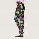 El diseño original de las leggings de yoga de forma sintonizada/vaporwave con formas y fondo negro en el estilo Memphis.