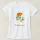 California en texto naranja, Una amapola dorada en círculo. Es una foto simple pero dramática de un Poppy una de las varias especies que crecen silvestres en California (género escherbeczia). Este sería un gran recuerdo de una visita a California, el Golden State. La flor del estado es la amapola de California (Escherbeczia californica). Vivimos en un área de California donde los amapolas crecen silvestres. Cada primavera nuestro patio delantero se llena de un revuelo de amapolas. Sólo tiramos de las malezas y las dejamos crecer. Esta es una fotocopia de una amapola de nuestro patio. ¡Siéntase libre de personalizarlo!