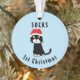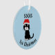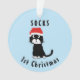 Imagen de un gato con un gorra navidad. Todo el texto se puede cambiar fácilmente. Al revés, el gato parece molesto porque te atreviste a ponerle un gorra. La fecha también está en el lado inverso.