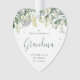 Las bayas de nieve pintadas a mano y los tallos de eucalipto forman un borde que cruza la parte superior de este adorno en forma de corazón. Todo el texto es totalmente editable, por lo que puede cambiar fácilmente la redacción y cambiar el estilo/color/tamaño/ubicación del tipo de letra. Reemplace la foto de plantilla en la parte posterior por la suya propia.