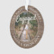 Celebra la alegre primera fiesta de tu compromiso con una foto personalizado 2 "Nuestra primera Navidad comprometida" redondeando un adorno de acrílico de madera falsa. Todos los textos e imágenes de esta plantilla son fáciles de personalizar y pueden ser diferentes o iguales en el frente y el reverso. (CONSEJOS DE DISEÑO DE IMÁGENES Y TEXTO: 1) Para ajustar la posición de la redacción, agregue espacios al principio o al final. 2) Para centrar la foto exactamente como quieras, córtelo en una forma cuadrada antes de subirla al sitio web de Zazzle.) Como idea, la tipografía del guión puede ser "Juntos" o "Casados". El moderno diseño de esta casa de campo presenta un rústico borde de madera de imitación marrón, caligrafía de estilo manuscrito, los nombres y el año de la pareja y dos fotografías de su elección. Este boda único añade un toque elegante a las decoraciones caseras de Navidad.