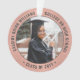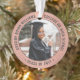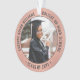 Commemorate graduation day with an elegant pink and grey custom 2 photo round acrylic Christmas ornament. Pictures and all text are simple to customize and can be different on front and back. (IMAGE & TEXT DESIGN TIPS: 1) To adjust position of wording, add spaces at beginning or end. 2) To center the photo exactly how you want, crop it into a square shape before uploading to the Zazzle website.) Include any favorite inspirational quote, motivational saying, school name and degree, congratulations, thanks mom and dad, or other message of your choice. Design features a gray & rose gold faux foil border, personalized modern typography name, school, & class year in a circle, and photos of the graduate, such as senior pictures or images from the commencement ceremony. Makes a thoughtful keepsake graduation gift idea. Use as party favors or decorations for a stylish addition to your special day celebration.