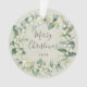 Ramas de eucalipto y snowberries pintados a mano en una hermosa corona navideña sobre fondo crema. Texto totalmente editable: cambia la redacción, el estilo, color, tamaño y ubicación en el frente y dorso del adorno. Disponibles artículos coordinados.