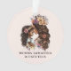 Hermoso ornamento de una madre y una hija negras con flores vibrantes en su cabello, celebrando el amor, la familia y el patrimonio. Un diseño sincero que honra el vínculo entre madre e hijo. Ideal para el Día de la Madre, los cumpleaños o como un regalo significativo para las madres, las hijas y las familias que aprecian la unión.