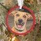 Conmemore la adopción y el regreso de su mascota a su 'hogar para siempre' con este adorno personalizado. El lado frontal tiene espacio para una fotografía que está rodeada por un borde rojo de Navidad. El lado posterior presenta el mismo borde rojo contra un fondo cremoso. Coloque su propio texto personalizado: nombre, fecha de adopción o lo que desee, utilizando las plantillas fáciles proporcionadas. La parte posterior también tiene una ramita colorida de acebo con bayas, en rojos y verdes navideños.