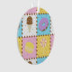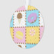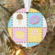 Satisfacer tu diente dulce con este colorido patrón de delicias como un helado de chocolate, un donut de chocolate con espuma violeta, un macarón amarillo limón y una langosta rosada y blanca, separada por patatas de chocolate y rodeada de rociadores de arcoiris sobre cuatro plazas de colores vivos.