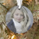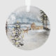 Este adorno está diseñado con una foto de su elección en la parte delantera y un año personalizado! La parte trasera está diseñada con una imagen de acuarela de bosque de bosques que incluye una cabaña en la nieve con un árbol de Navidad y ciervo. ¡Es un gran heredero o un gran amante de la familia!