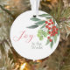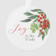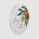 Este hermoso y festivo diseño acuático con temática de Navidades presenta bayas rojas con follaje verde y es la manera perfecta de celebrar la temporada de fiestas. Este adorno de árbol de Navidad incluye las palabras "Alegría al mundo" por un lado y es personalizable por el otro lado incluir un saludo como "Feliz Navidad Abuela" o cualquier otro saludo, así como el año actual y el nombre del remitente. Un gran regalo para darle a alguien que le importa esta temporada de Navidades que apreciarán en los próximos años.