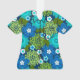 Terreno naval de color azul oceánico, turquesa, aqua, blanco, oliva y verduras de cal. Las flores y hojas tropicales fueron dibujadas en un estilo retro gráfico que fue popular en los años cuarenta en los menús de los barcos de vapor hawaianos. Este diseño se presenta en varios colores.