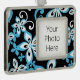 Patrón Aloha Hawaii en negro y azul. Derechos de autor de Kelly Hironaka, No. 3 Design