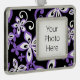 Patrón Aloha Hawaii en negro y morado. Derechos de autor de Kelly Hironaka, No. 3 Design