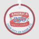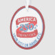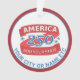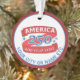 These America 250 acrylic ornaments make fun patriotic holiday gifts for family and friends as well as yourself. Personalize with your state or other text on the red ribbon style design and a single line of blue text curving below that, printed on both sides. America 250 merchandise is a patriotic way to celebrate 1776 2026 America's 250th anniversary and these red, white and blue round acrylic Christmas tree ornaments are a chic way to commemorate this historic event. Display these semiquincentennial ornaments in the holiday tree, hanging from your rear view mirror or hanging from a bookcase or shelf as a treasured keepsake.