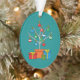 Un ilustracion de un simple árbol de Navidad con ramas desnudas con bolas colgantes y regalos coloridos. Celebremos y estemos alegres en esta temporada navideña con buenas comidas y hermosos regalos para la familia y amigos.