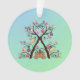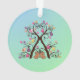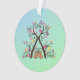 Árbol de Pascua con huevos coloridos, flores y polluelos. Dos conejitos besándose bajo el árbol. Diversión por Pascua o primavera.