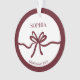 El adorno moderno para dama de honor en color burdeos elegante con nombre y año presenta un diseño hermoso y minimalista que encarna la sofisticación y la gracia. En el corazón de este adorno hay un solo lazo elegante de color burdeos, que sirve como punto focal. Debajo del lazo, encontrarás el texto personalizado "Dama de honor" junto a un año personalizado, mientras que el nombre de tu dama de honor se muestra elegantemente encima del lazo en una escritura delicada. El adorno está enmarcado con un borde sutil de color burdeos, lo que le da un toque atemporal y elegante.