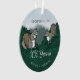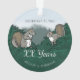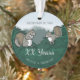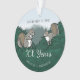 ¡Aquí hay un adorno de aniversario boda que puedes personalizar! Dos ardillas ilustradas cuelgan entre las ramas de los pinos, y se puede añadir una fecha boda, un número de años juntos, y dos nombres para hacer de esto un regalo totalmente personalizado!