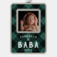 Celebra su primera Navidad como abuelo con este adorno de fotos dulce que presenta una foto de un bebé enmarcada por una clásica manta de búfalo verde y negro. "Ascendido a Baba" aparece debajo de letras blancas rústicas, junto con el año.