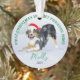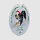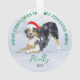 Aussie de humor lúdico, con un Sombrero de Santa. Los pinos verdes se desvanecen en el fondo con copos de nieve en primer plano. Diseñado e ilustrado por la artista de renombre mundial ©Jacqueline Schneider.