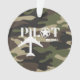 El diseño presenta una tipografía piloto con un avión militar en un fondo de camuflaje con una opción de personalizable para añadir el nombre del piloto delante del adorno. En la parte posterior del adorno, un mensaje sincero grabado a tu piloto favorito: "El mejor piloto de Sky" y una línea de firmas deseándoles una "Feliz Navidad desde [apellido]", Perfecto para un piloto o entusiasta de la aviación a los que les gusta la simplicidad. Contáctame para más cambios. ¡Gracias por visitar nuestra tienda! Auge de derechos de autor en los diseños de estilo LLC.