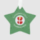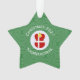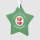 La decoración de la estrella en forma de estrella navidad tiene un ángel vestido con la bandera roja y blanca de Dinamarca. El ángel Navidad danés se encuentra en el centro de un círculo de plazas blancas rodeadas de un fondo de cuadrados verdes y sarcásticos. Añade tu propio texto o personaliza con un nombre y un personalizar con el año.