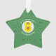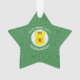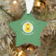 Adorno de acrílico en forma de estrella que presenta a un ángel que lleva la bandera amarilla y roja del León Rampante Escocés, para decorar tu Navidad y fiestas. El ángel vuela en un círculo blanco de cuadrados ondulados sobre un fondo de cuadrados ondulados verdes. Personaliza tu adorno de estrella reemplazando ?? con el año encima del círculo. Personaliza añadiendo tu nombre debajo, o el nombre del destinatario del regalo. Diseñado para celebrar el orgullo de Escocia.