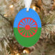 Bandera oficial gitana del viajero de verde y azul que representa la tierra y el cielo con una rueda de vagón roja, que representa el viaje. Personalice este diseño eliminando o cambiando el texto. Visita OCONNART STORE para encontrar productos a juego y más regalos gitanos.