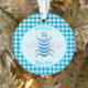 Este impresionante adorno presenta una imagen gráfica de una linda abeja de bebé azul con piernas negras y ojos turbios. Tiene un cuerpo azul pálido y difuso con rayas azules brillantes y una bonita antena azul en su nublada cabeza. Sus delicadas alitas tienen un patrón azul pálido en el suelo. El diseño también incluye girasoles azules bonitos. El texto es personalizable para que puedas incluir el nombre de tu maravilloso bebé y un mensaje de tu elección acerca de la más reciente y más linda abeja de la ciudad. Este adorno es ideal para celebrar su primera Navidad.